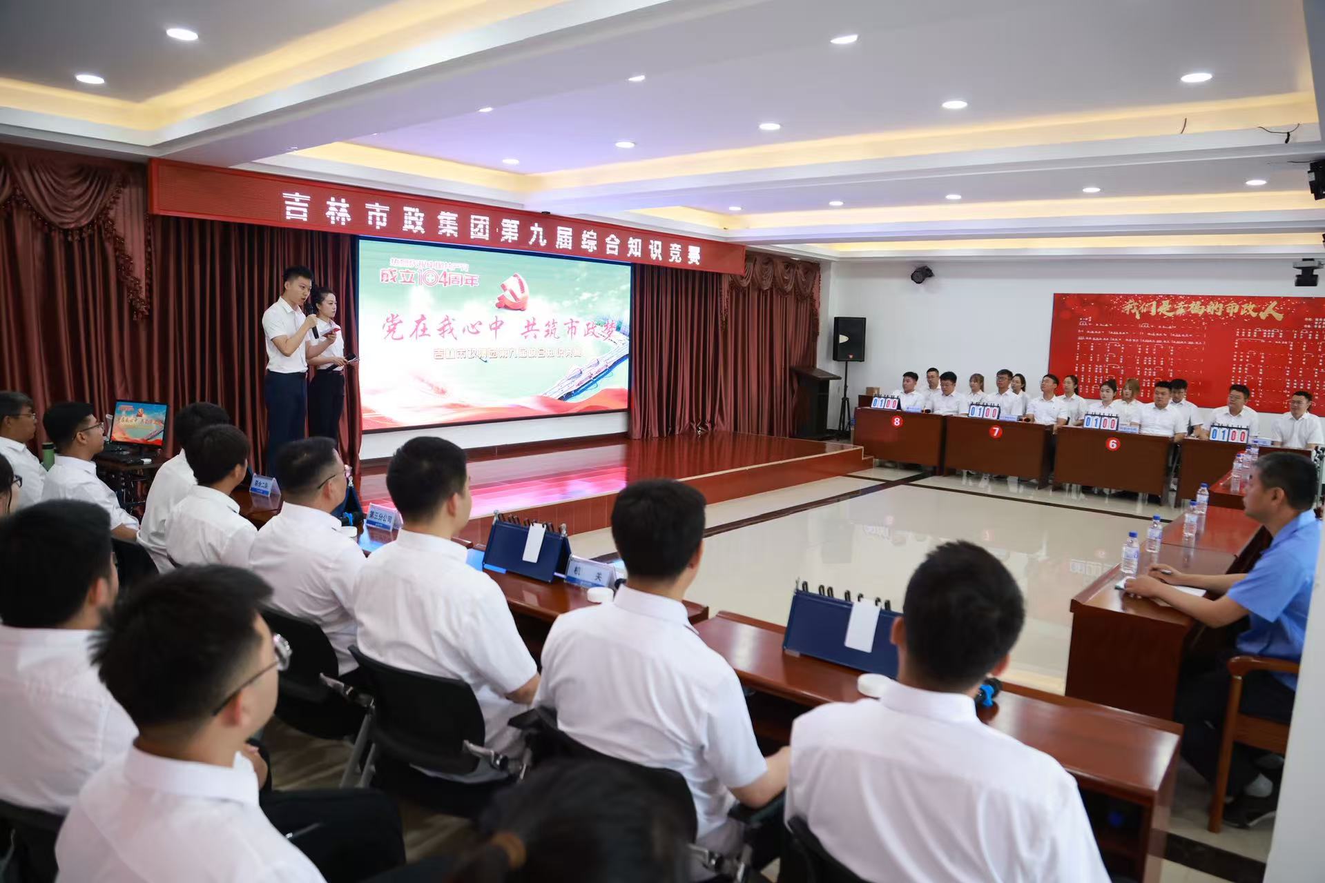 为提高员工专业知识水平,增强员工凝聚力,打造学习型组织,集团公司党委在中国共产党成立104周年之际,成功举办“党在我心中,共筑市政梦”第九届综合知识竞赛,来自集团公司机关、各基层单位的8支参赛队伍、32名选手同台竞技,上演了一场精彩纷呈的知识大比拼。集团公司党委副书记代为、总经理助理王亮出席活动。