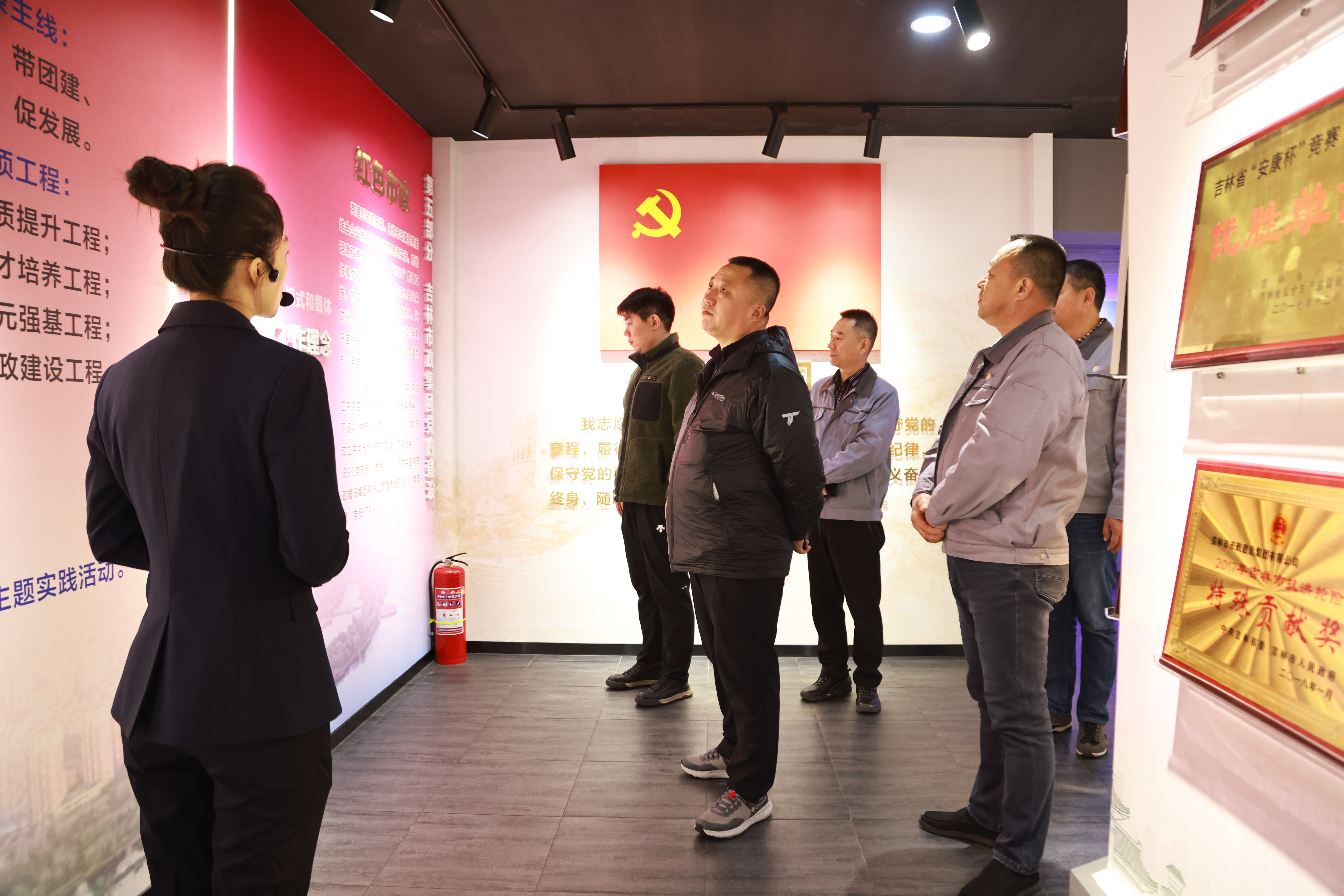 调研伊始,我方邀请张喜丰副院长一行参观了吉林市政党建馆。我方详细介绍了党建馆的建设理念、展示内容及企业在党建引领下的发展历程与责任担当。在参观过程中,双方围绕党建引领企业发展、党建与业务深度融合等内容展开实时交流。张喜丰对我方坚持党建引领经营发展的思路给予高度认可与肯定。