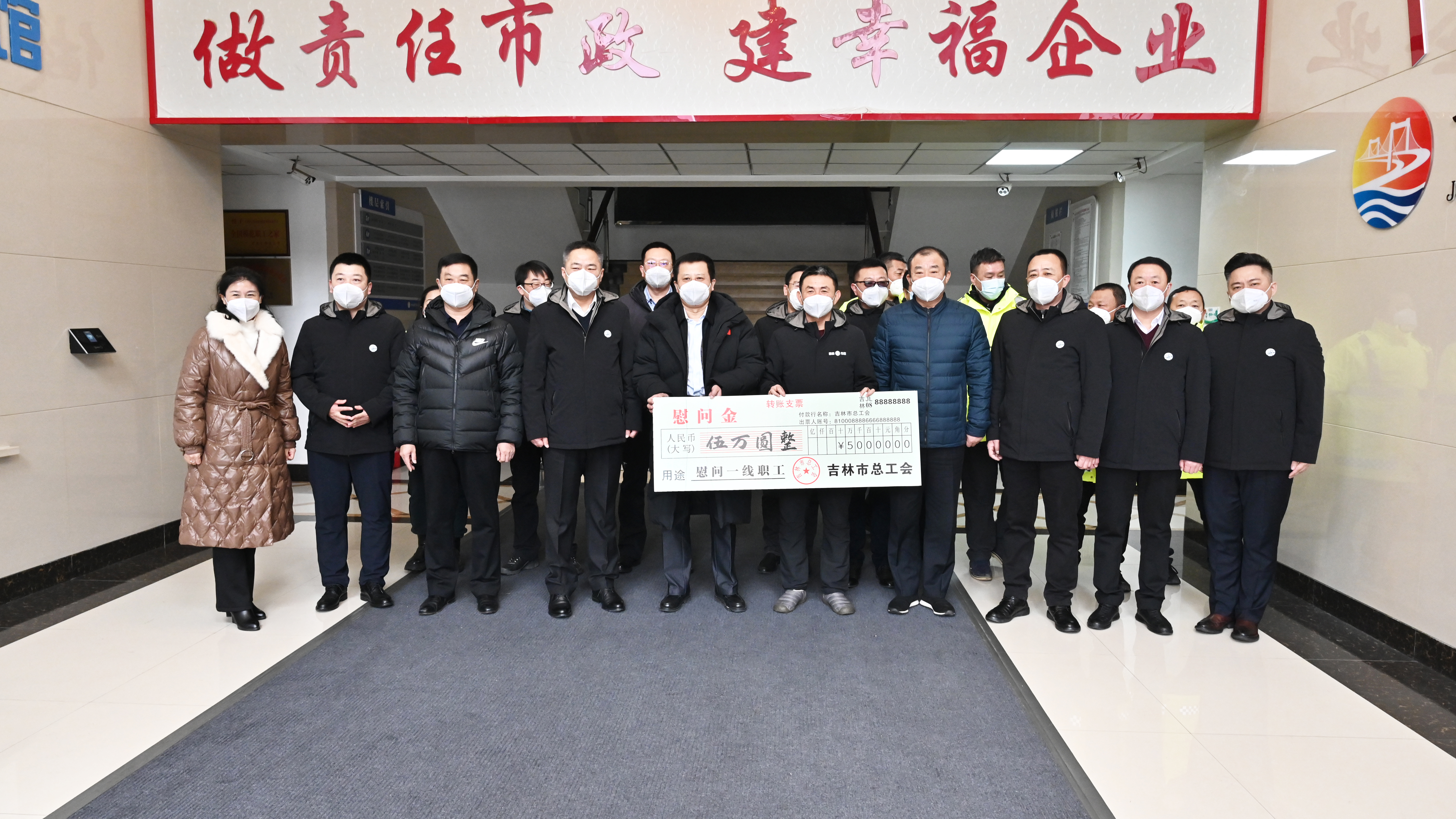 新春佳节来临之际,2023年1月13日上午,副市长崔志刚、市政府副秘书长郭东方、市总工会常务副主席洪岩等市领导和市总工会相关领导一行到集团公司,为集团职工送来了五万元慰问金和节日的祝福,并看望了全国劳动模范王衍平和困难职工刘凤山。