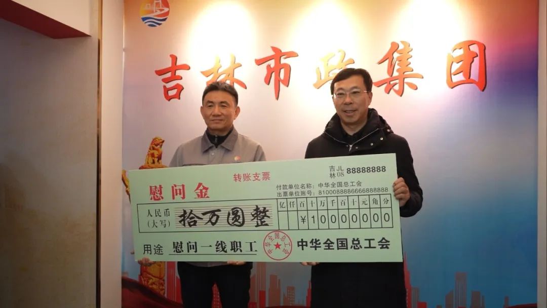 2023年1月18日,中华全国总工会副主席、党组成员、书记处书记金善文一行来到吉林市政集团开展“送温暖”慰问活动。