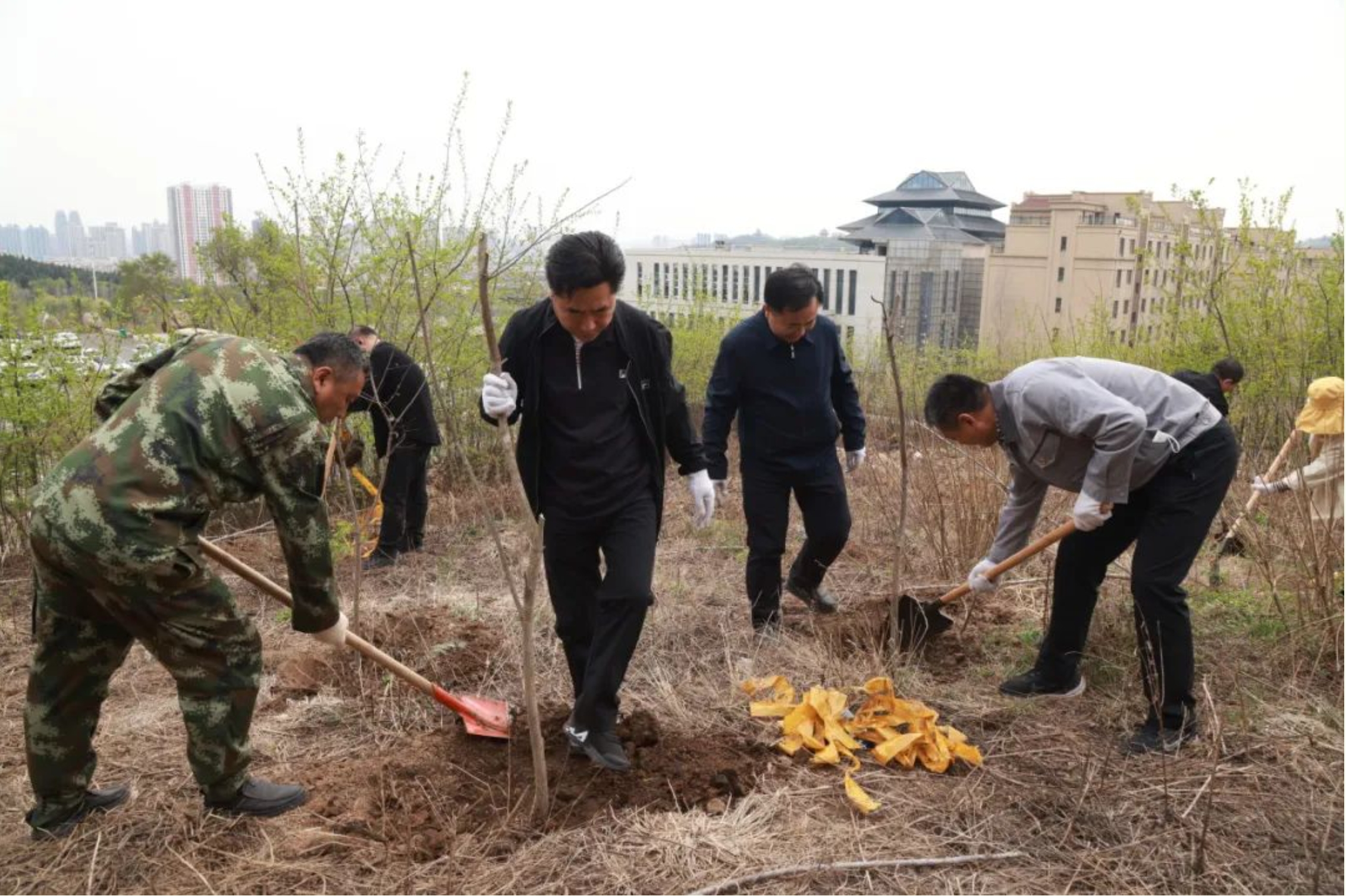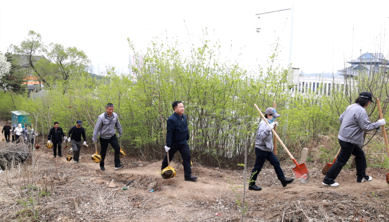 为深入学习贯彻习近平生态文明思想,进一步发挥基层党组织战斗堡垒作用,以共建促自建,实现优势互补,2024年4月26日,吉林市政集团党委与党建共建单位高新区党工委联合开展了“植树造林·建设美丽江城”主题党日活动。吉林市政集团机关党支部33名党员干部和吉林高新区党委办联合党支部的14名党员干部参加了活动。这是吉林市政集团连续两年在玄天岭文化公园开展植树活动。
