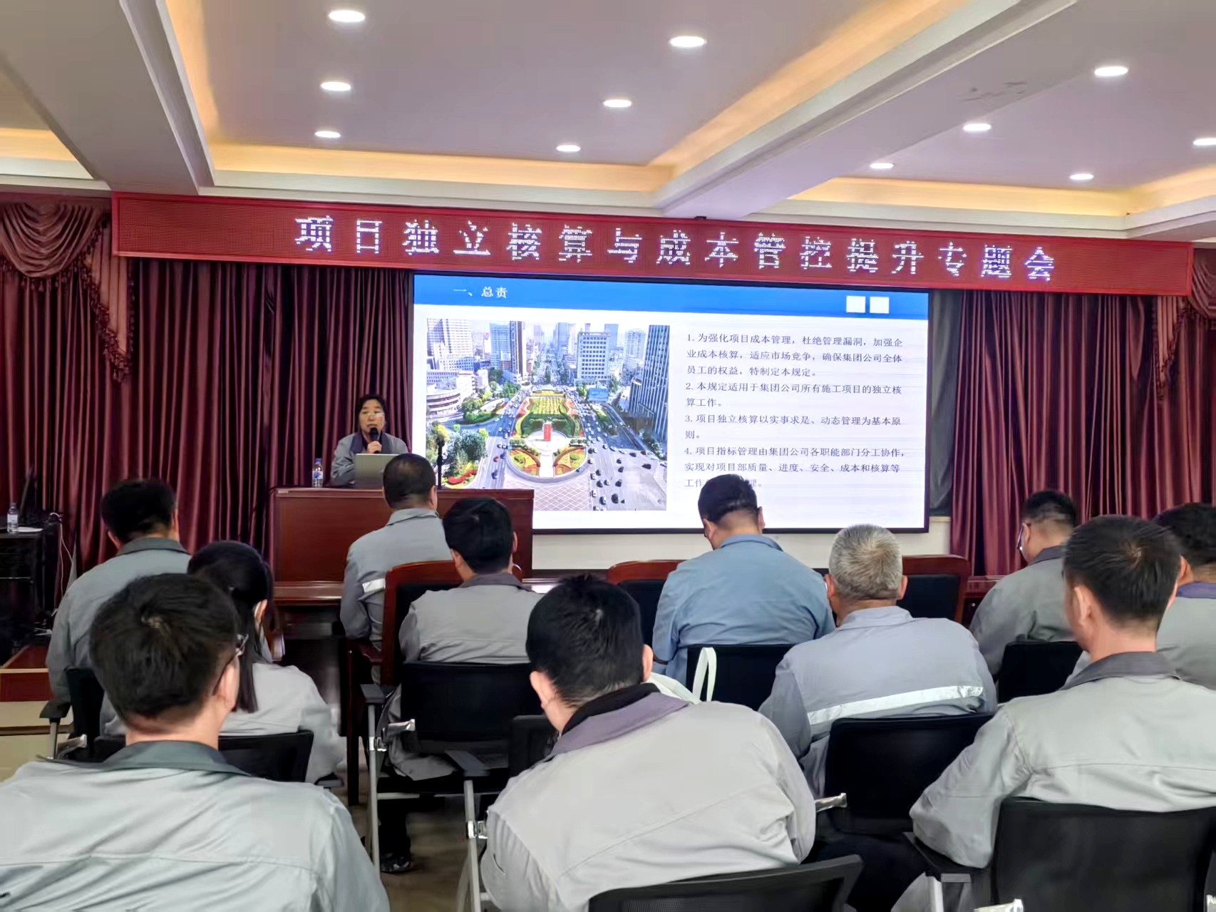 为深入贯彻落实集团公司项目独立核算制度,进一步强化全员成本管控意识,提升项目成本管理质效,增强项目经理综合管理能力。2025年4月18日,集团公司经营管理部会同集采中心组织召开“项目独立核算及成本管控提升专题会议”。会议通过制度宣贯、经验分享和互动研讨等形式,推进成本管控工作落地见效。集团公司总经理助理王亮出席会议,机关相关职能部门负责人、各分公司副经理、项目经理、技术负责人等共计70余人参加会议。