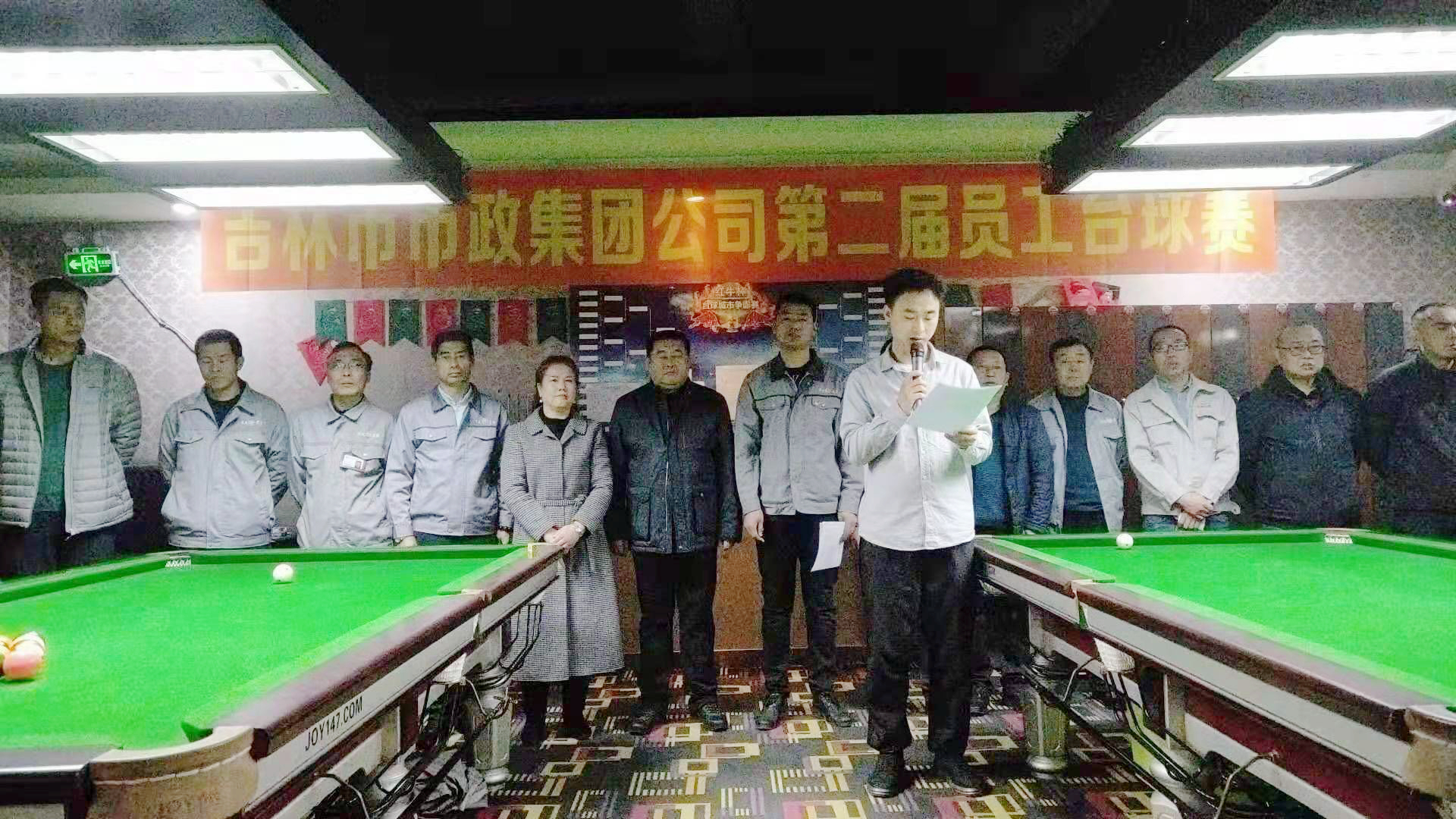 2019年3月14日,吉林市市政建设集团第二届员工台球赛在头等舱乔氏桌球俱乐部拉开序幕。集团公司副总经理苏润江、党委副书记戢伟宏、赞助单位桥梁分公司党支部书记张忠成以及来自集团各单位11支代表队的60余名选手参加了开幕仪式。