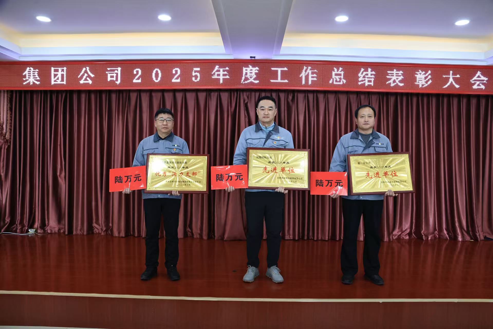 大会对2025年度先进集体、优秀个人及获奖工程项目进行了隆重表彰。第一分公司和筑路材料公司荣获2025年度先进单位,红旗大桥直属项目部党支部荣获优秀“活力支部”;徐珊珊等36名员工荣获优秀个人荣誉;同时对荣获吉林省“长白山杯”等工程奖项给予表彰奖励。