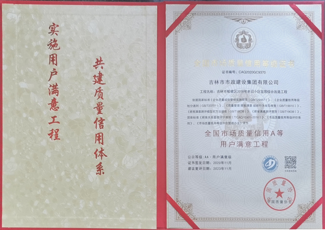2020年全国市场质量信用A等 用户满意工程--吉林市船营区2018年老旧小区宜居综合改造工程