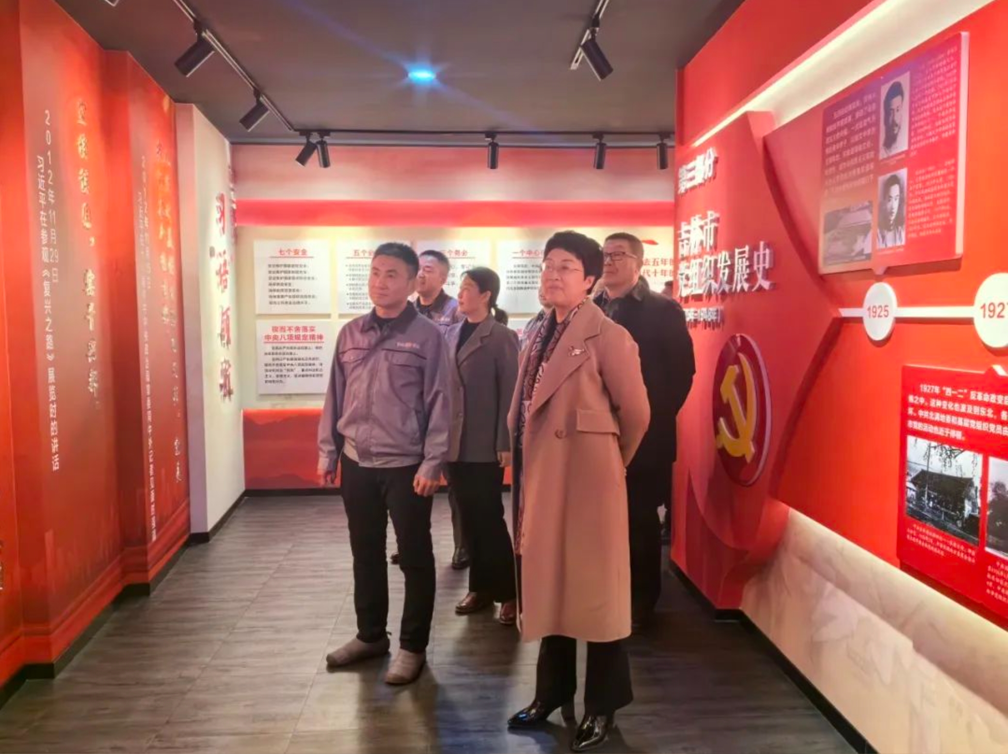 何晓杰书记一行首先来到吉林市政集团党建馆参观。作为吉林市首家民营企业党建馆,是集政治学习、理论普及、典型弘扬、品牌展示为一体的党建生活阵地,讲解员详细介绍展馆各项内容,调研人员充分了解了吉林市政集团发展历程、党建工作思路、模式和企业文化,对企业所取得的成绩给予高度赞扬。