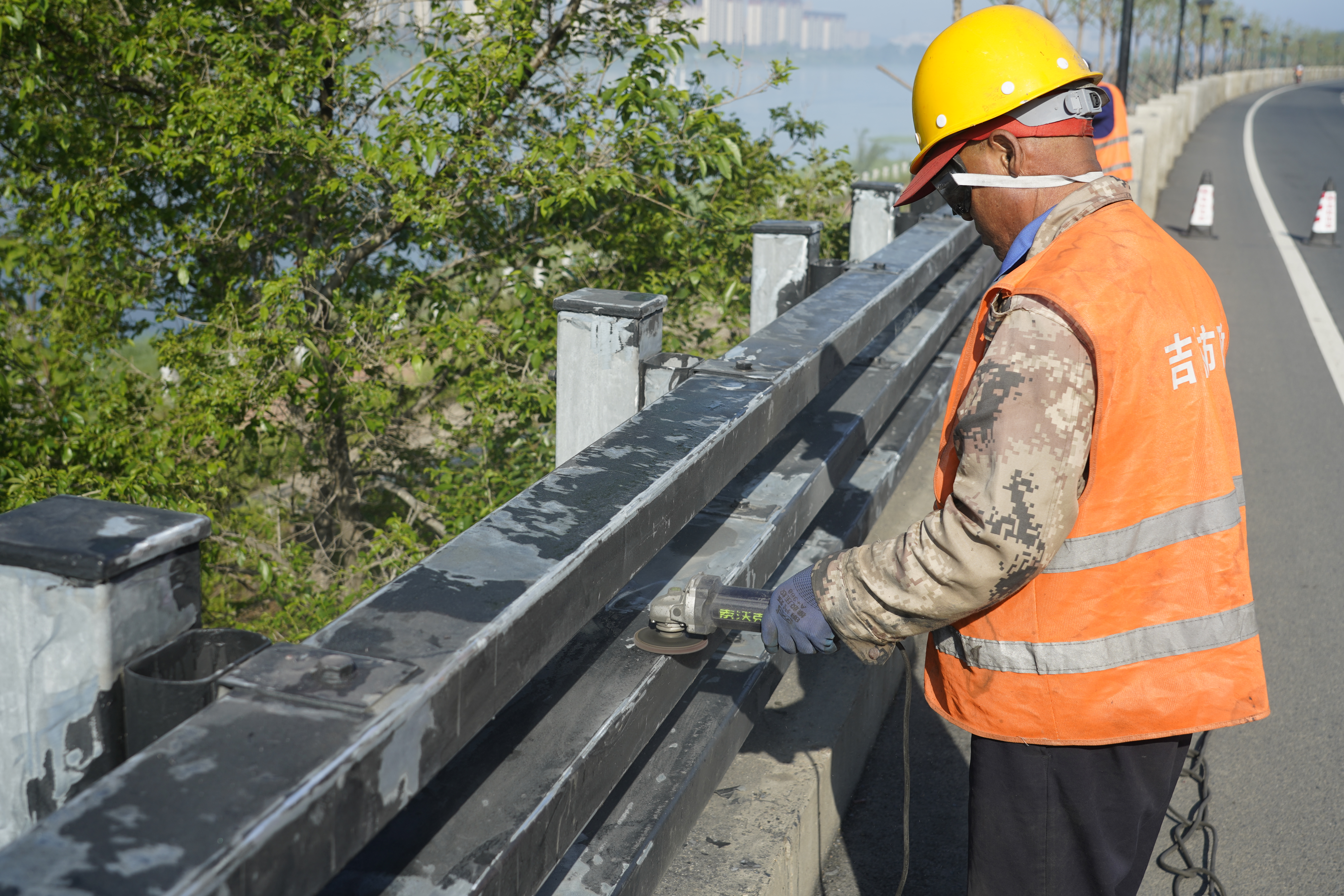 松花江沿江栏杆维修作为本次抢修工程中造价最大的,也是任务最重的项目。主要包括松江西路、松江中路栏杆组件补充,滨江东路栏杆打磨喷漆,滨江西路、滨江南路栏杆更换主杠、打磨喷漆。工程范围涉及吉林市近一半沿江地段,涉及范围广,工作零星分散。桥梁分公司积极与业主、设计沟通,合理安排3个作业面同时施工,保证施工进度。截至5月25日,完成了大部分施工任务,仅剩滨江南路护栏更换工作,施工质量和进度获得业主高度赞扬和认可。